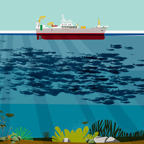 Ce motion design permet d'expliquer simplement les différentes étapes de la pêche pélagique : de la détection des espèces jusqu’au stockage, au contrôle et à la commercialisation des captures.